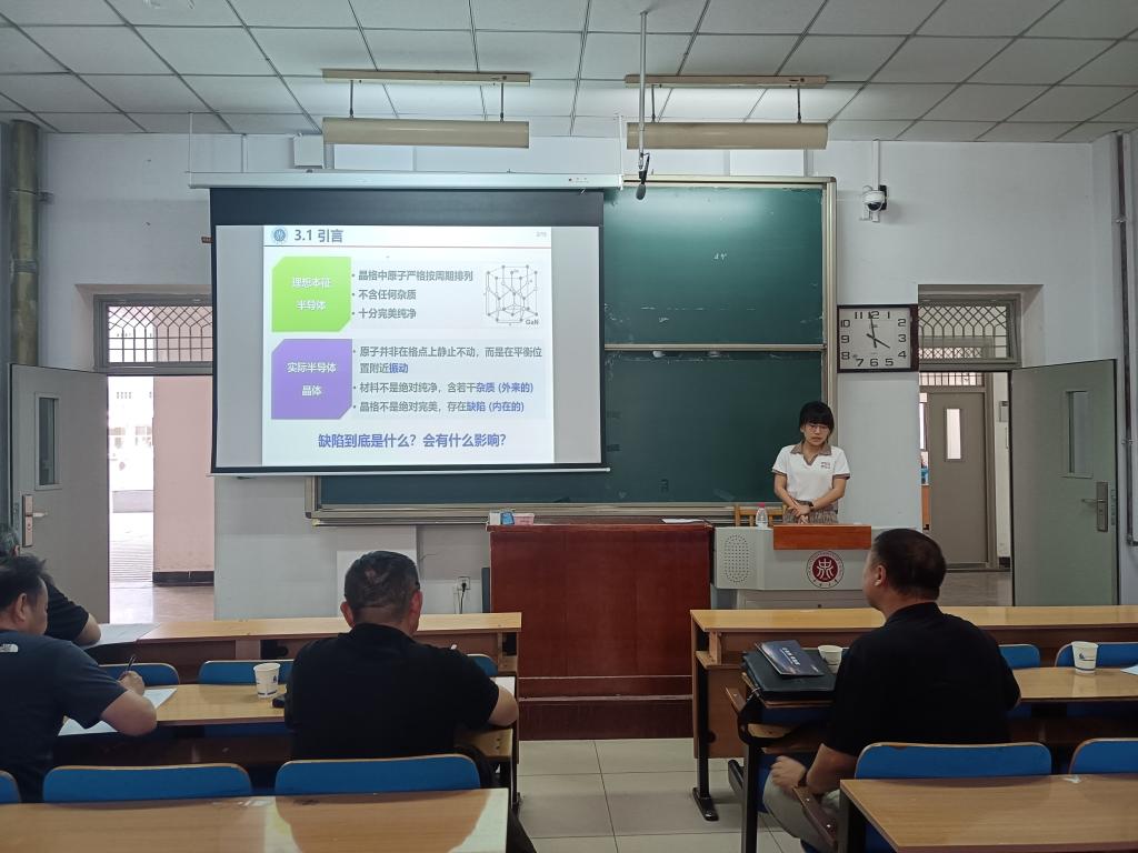 首先,教学院长梁庭强调了新教师在推动学院教学改革和提升教育质量中的重要作用,并对参与试讲的教师们表示了热烈的欢迎和高度的期待。本次试讲活动共有8位新教师参加,他们分别就光电检测技术、宽禁带半导体材料与器件、半导体物理与器件等多个专业领域进行了精彩的教学展示。每位候试讲教师都准备充分,不仅展示了深厚的学术功底,还体现了独特的教学风格和创新的教学理念。