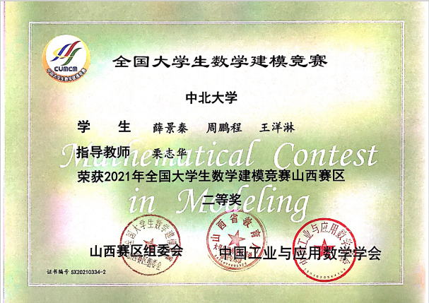 2021.12 获“高教社杯”全国大学生数学建模大赛省二等奖