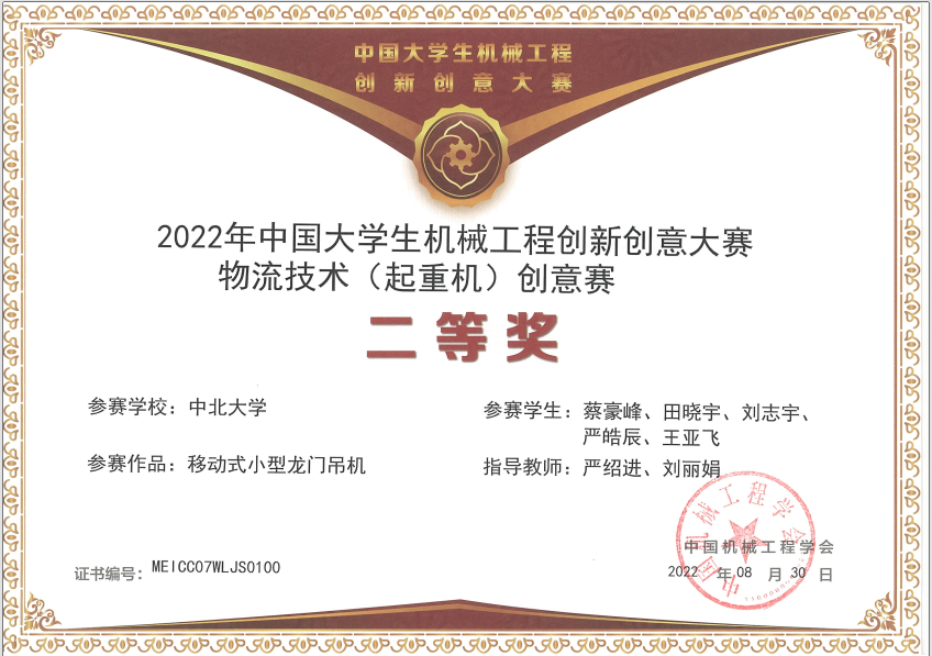 中国大学生机械工程创新创意大赛全国二等奖