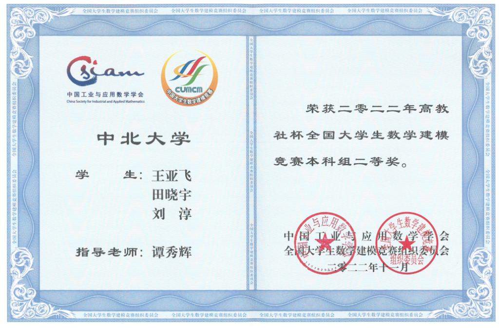 高教社杯数学建模全国二等奖