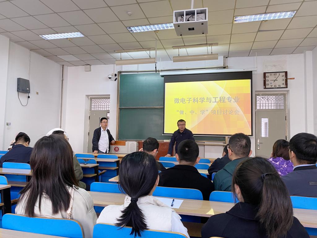 在11307H召开“做中学”本科实验室建设方案讨论会,微电子科学与工程、集成电路设计与集成系统专业相关教师参会,会议由梁庭副院长主持。