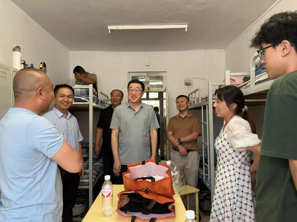 在走访过程中,领导们每到一间宿舍,都与新生及其家长进行了亲切的交流,详细了解他们适应大学生活的情况以及生活上的需求。刘校长鼓励新生们要“迅速适应大学生活,珍惜时间,努力学习,积极参与校园文化活动,全面提升个人素质。同时,也请家长们放心,将孩子交给我们,学校将不遗余力地提供优质的教育和关怀。”领导们特别关注了家庭经济困难的学生,询问他们是否已经享受到学校的资助政策,并鼓励他们要有信心克服困难,学校将提供必要的帮助和支持。