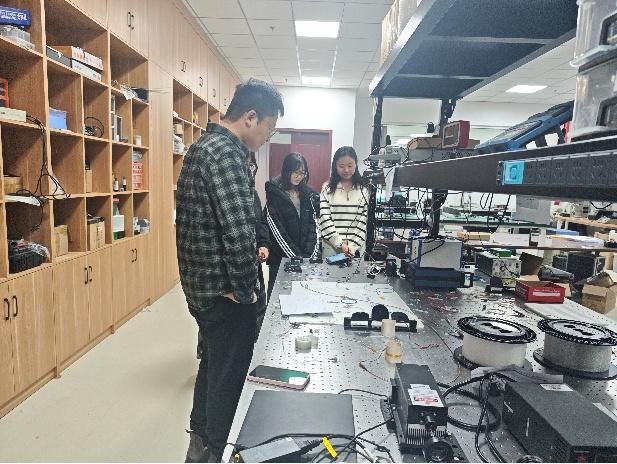 本次活动主要是和学生们一起探讨光纤激光与传感科研前沿知识,激发学生的学术兴趣,助力学生全面成长。主要围绕光纤激光与传感技术展开。首先从光 纤激光的发展历史与现状切入,王海洋老师深入浅出地介绍了其在航空航天结构健康监测等领域的重要应用价值。随后,结合自身科研经历,分享了在低噪声随机光纤激光 器、随机光纤光栅阵列反馈等领域取得的最新研究进展与技术突破。通过案例分析,详细讲解了科研实践中如何培养问题意识、团队协作精神以及创新能力,这 些能力在学生成长过程中至关重要。在互动环节,学生们踊跃提问,从技术难点到未来职业发展,讨论气氛热烈。最后和学生们探讨了科研不仅是理论知识的拓 展,更是一种思维训练,对学生的学习能力和综合素质提升有深远意义。鼓励同学们积极参与实验研究,争取早日融入科研团队,通过科研活动为自己的成长注 入更多动力。本次活动不仅让学生对光纤激光与传感技术有了更深入的了解,也让他们切身体会到科研在个人成长中的重要性。