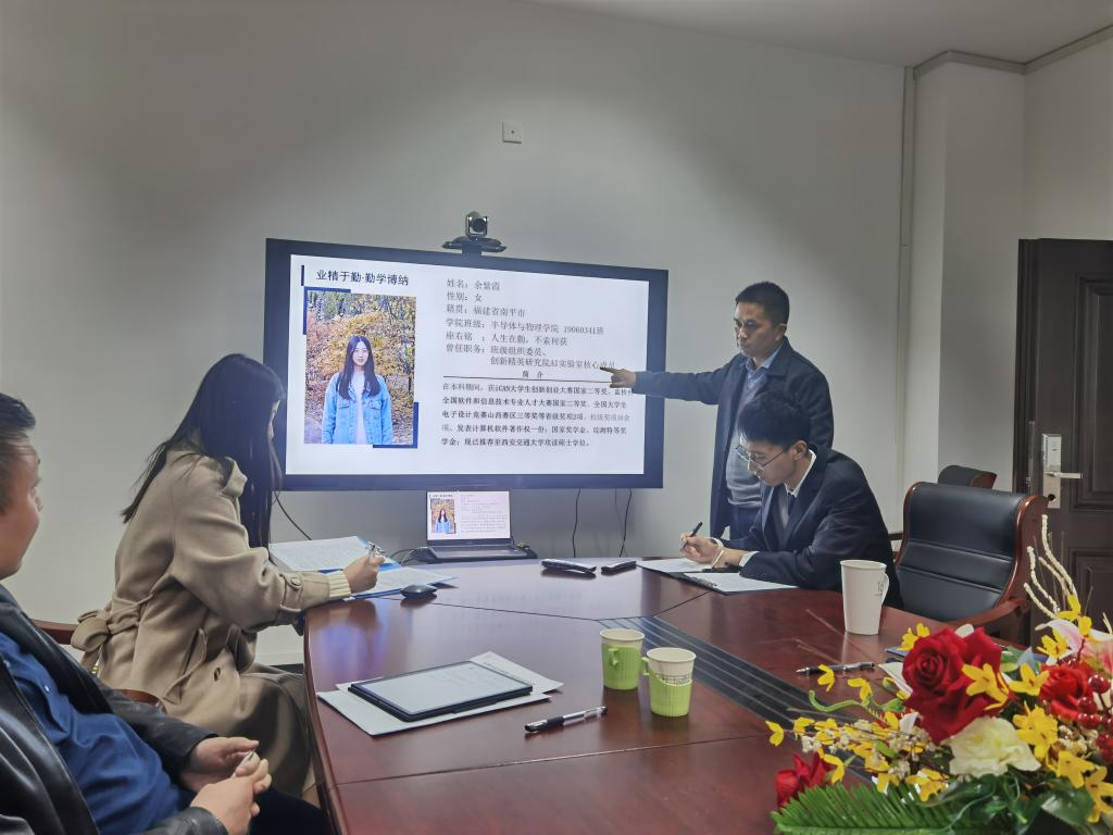在主持人宣布校长奖章的评审条件和评选要求后,紧接着两位竞选学子以精彩生动的答辩演讲为此次评审会拉开了帷幕。学子们以PPT的形式分别在道德风尚、学习成绩、学术研究、学科竞赛、社会实践等方面展现了个人魅力风采。时刻秉承“致知于行”的校训,积极参加各项国家级、省级竞赛的19级应用物理学专业的薛景秦同学以创新奋进,将求“知”践于“行”的学习态度及高超强硬的实践探索能力得到老师们的一致认可。来自19级微电子科学与工程专业的余紫霞同学从专业学习、学生生活、思想品德和志愿实践四个方面分别讲述她的大学故事,在进行优秀成果展示及个人成长环节答辩的同时,深刻地表达了对母校的感激。二位学子均以专业第一的综合成绩推免至中科院高能物理研究所与西安交通大学攻读硕士学位。