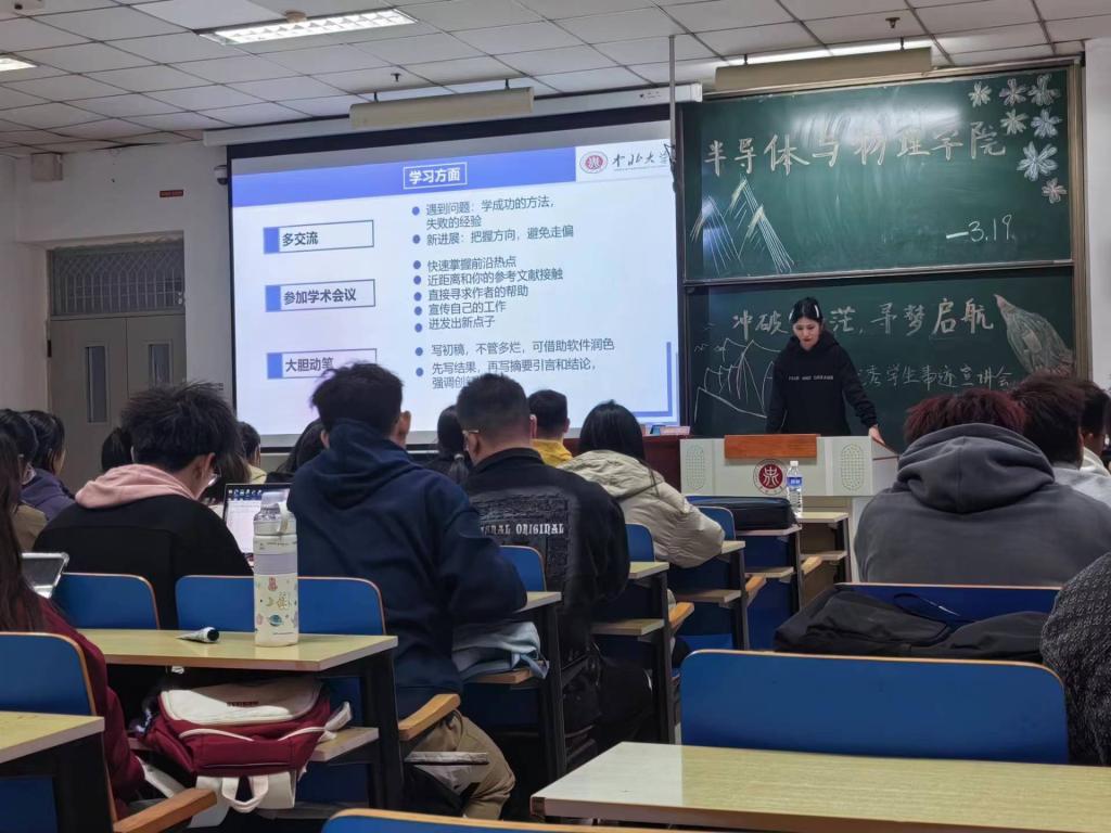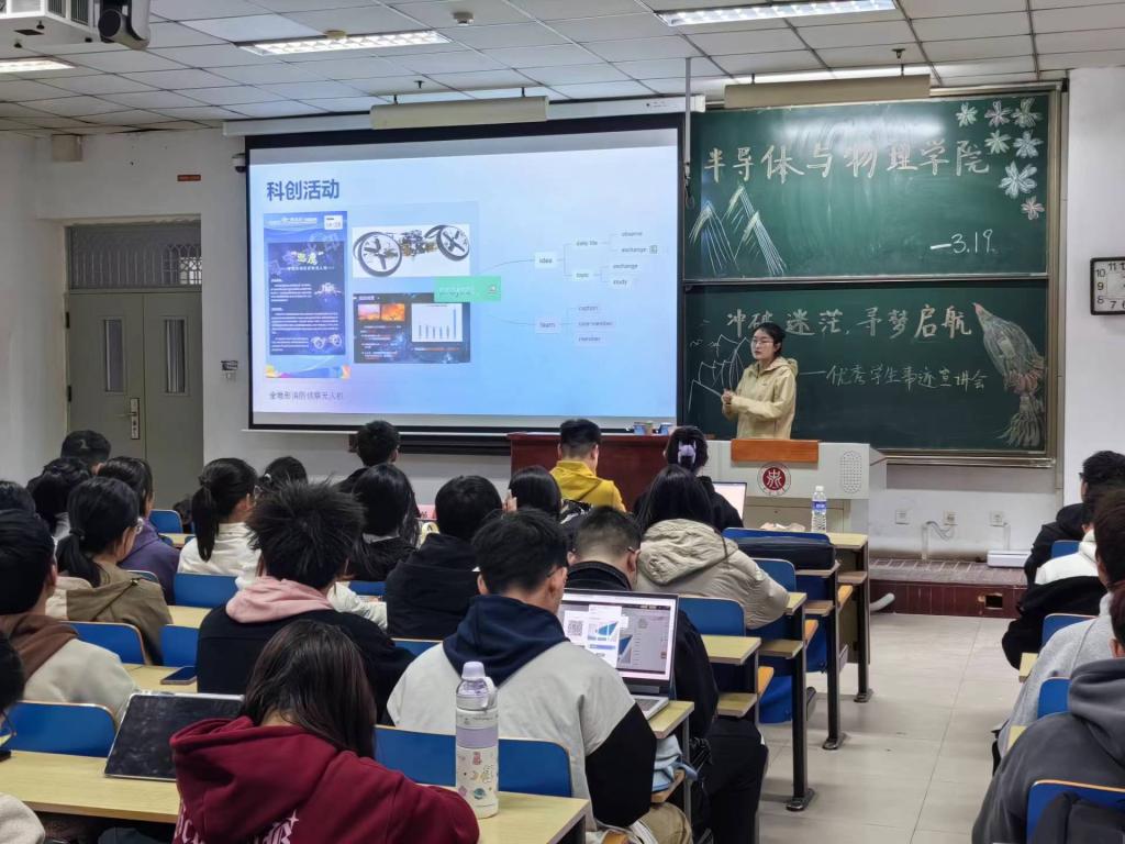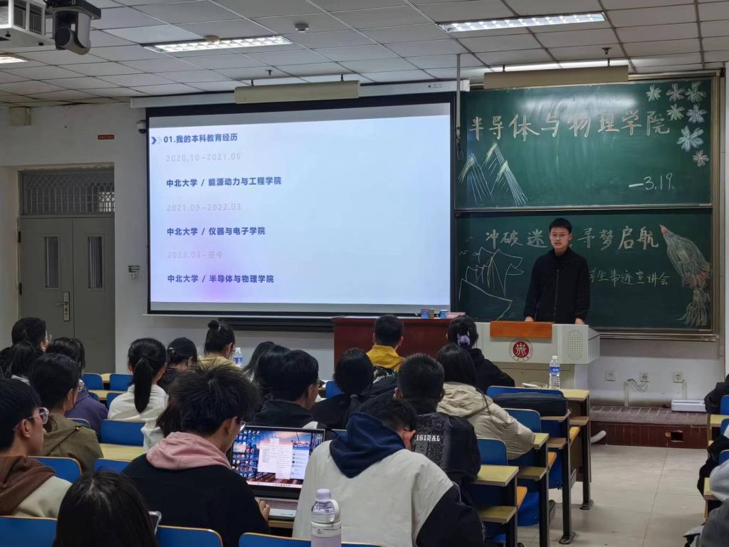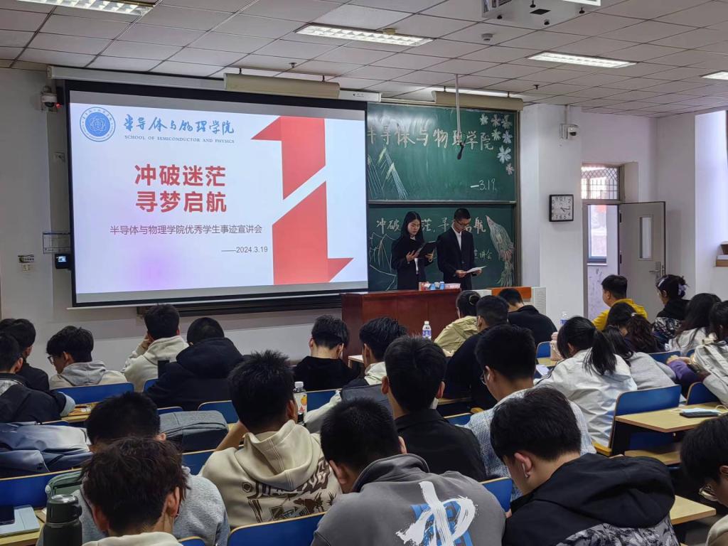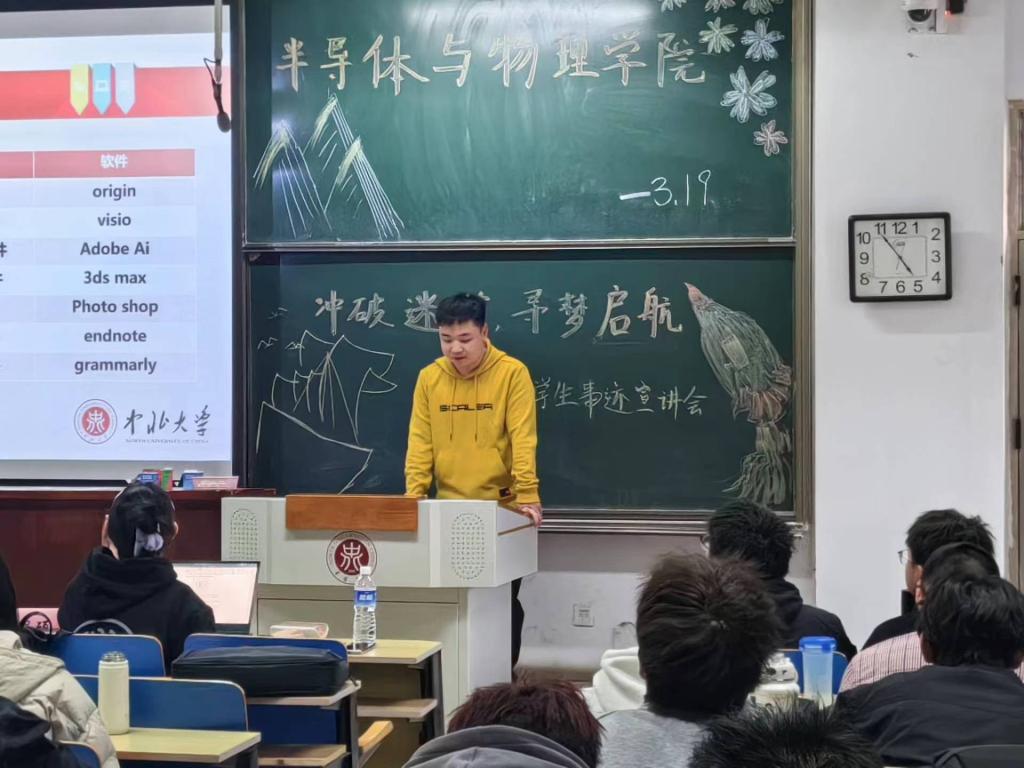 在11112H教室举行了“冲破迷茫,寻梦启航”的优秀学生事迹宣讲会。本次活动邀请了我院4名优秀学生,分别是获得2023年国家奖学金的同学:刘柯柯、王嘉慧、甄明硕;获得5G影院