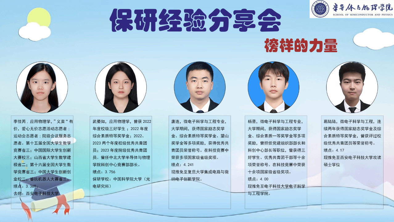 "榜样的力量—保研分享会"在10305H教室成功举办。本次分享会在王老师的悉心指导下,由学院学习部周密筹备、精心组织。活动吸引了来自各年级的200余名学生踊跃参与,现场座无虚席,交流气氛热烈,充分展现了学院学子积极向上的精神风貌和浓厚的学习氛围。